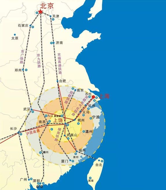 上饒是全國(guó)地級(jí)市中唯一的高鐵“十字”交匯的城市,乘高鐵坐高鐵直達(dá),北京僅需6小時(shí),廣州、貴陽(yáng)、柳州僅需5小時(shí),上海、廈門、南京僅需2小時(shí),杭州福州、合肥、南昌均為1小時(shí)左右,快速通達(dá)全國(guó)。