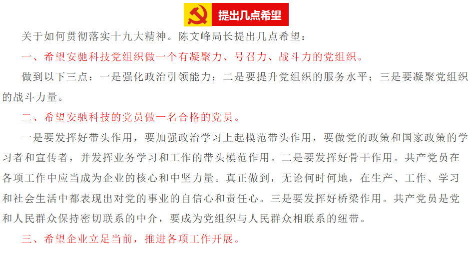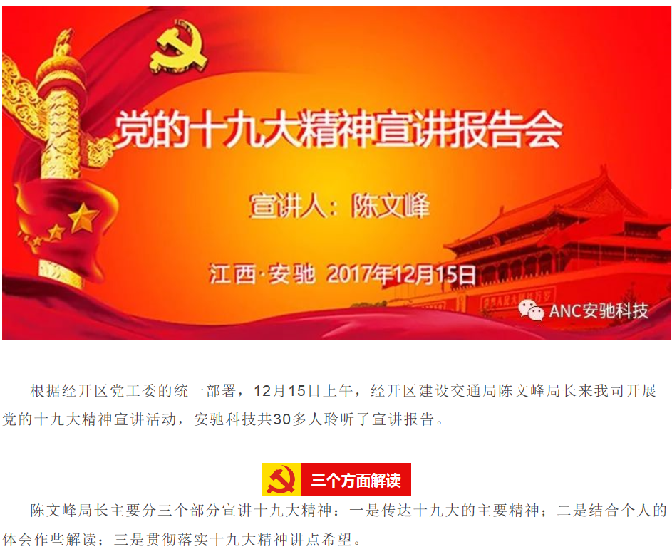 上饒經(jīng)開(kāi)區(qū)建設(shè)交通局陳文峰局長(zhǎng)到安馳科技宣講黨的十九大精神